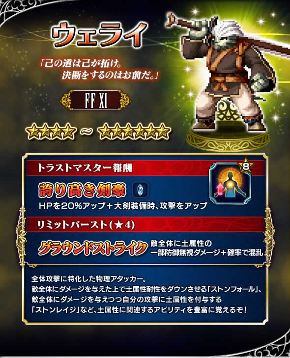 ※ウェライ、クロウは、★4のみ排出のレアキャラとなります
