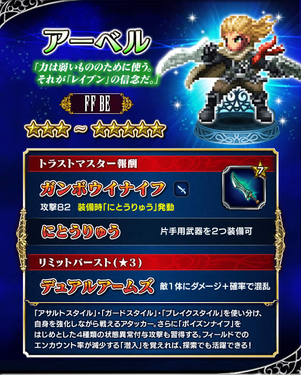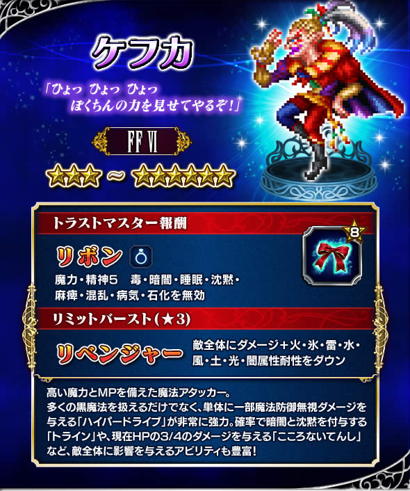 ※アーベル、ケフカは、★3のみ排出のレアキャラとなります