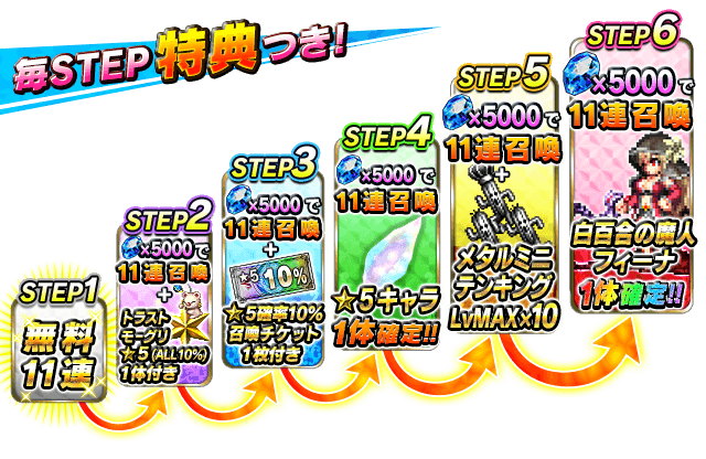 初開催を記念して、1ステップ目は11連が無料!